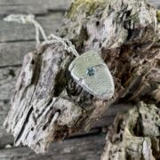 Real leaves collected in Italy, sit next to graduating deep blue labradorite briolettes and smaller labradorite beads. As the light hits the stones the colours change and blues go to greens and greys. An ornate secure clasp complete the piece.