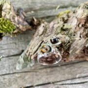 A small pale pink sapphire sits in a flush setting in the centre of this super shiny sterling silver ring. The edges have been textured to add detail and the inside has a contrasting buffed texture.